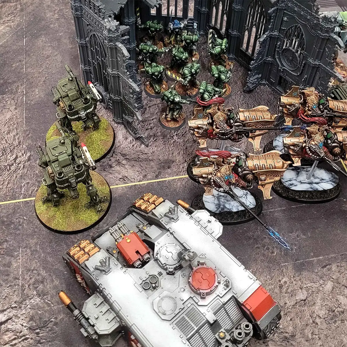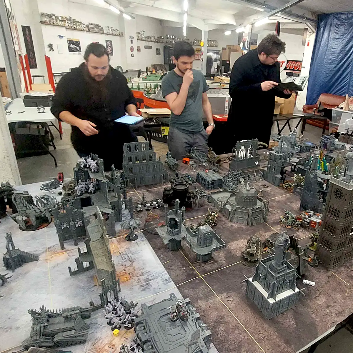 Plusieurs fois par an, nous organisons une soirée Apocalypse pour vivre des batailles épiques où les galaxies tremblent sous les affrontements titanesques de nos armées. Stratège chevronné ou un général en devenir, ces soirées sont l’occasion idéale de déployer vos plus grandes forces, tester des alliances audacieuses et repousser les limites de vos stratégies. Préparez vos figurines, affûtez vos dés, et venez réécrire l’histoire dans des affrontements qui ne laissent aucun survivant !